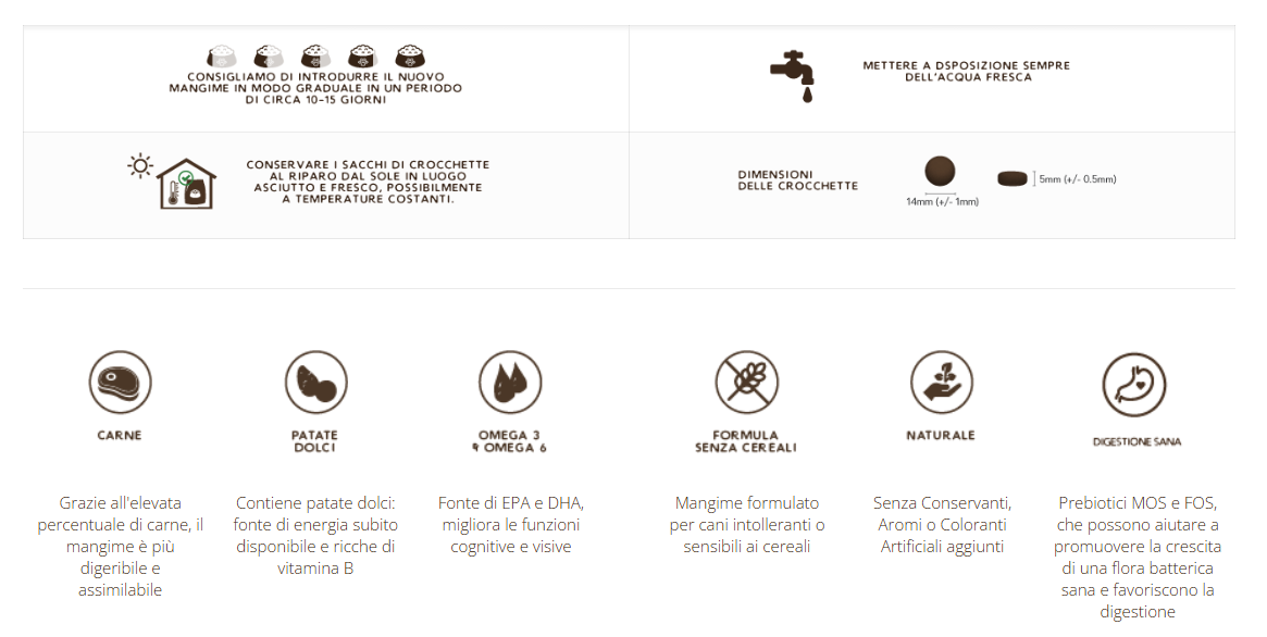 Ricetta ricca di tacchino (50%) ideale per i cani che preferiscono le carni bianche e consigliata nella stagione estiva. Selezioniamo la materia prima da allevamenti a terra per mantenere un alto standard di qualità. La presenza del mirtillo rappresenta una fonte di vitamine e di fibre alimentari. Ricco di Omega 6 & Omega 3. Senza cereali aggiunti e senza conservanti, aromi o coloranti artificiali.